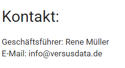 Der Nutzung von im Rahmen der Impressumspflicht veröffentlichten Kontaktdaten zur Übersendung von nicht ausdrücklich angeforderter Werbung und Informationsmaterialien wird hiermit widersprochen. Die Betreiber der Seiten behalten sich ausdrücklich rechtliche Schritte im Falle der unverlangten Zusendung von Werbeinformationen, etwa durch Spam-E-Mails, vor.